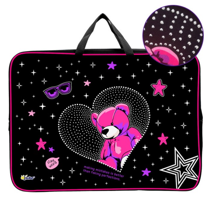 Папка А3 с ручками текстиль 75 мм 475*345 мм ПМД 3-22-4 дев Яркий мишка (тесьма) фоль 72964