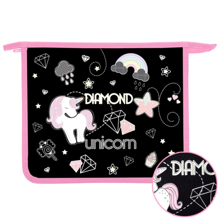 Папка д/тетрадей А5 молния сверху пластик 205*240 ПТ 73-12 дев Эмодзи лапки фольга 72733