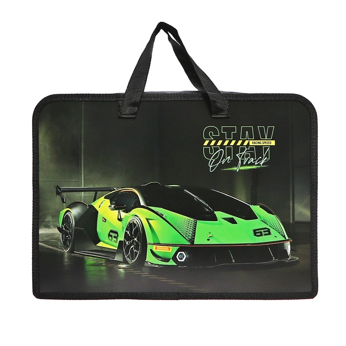 Папка для чертежей и рисунков А3, 470 х 350 х 75 мм, с ручками, текстильная, ПМД 3-20-4 Game auto (ручки-тесьма) 71729