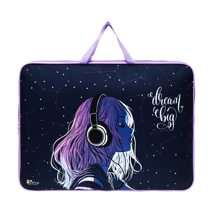 Папка для чертежей и рисунков А3, 470 х 350 х 75 мм, с ручками, текстильная, ПМД 3-20-4 "Девочка в наушниках" 71720