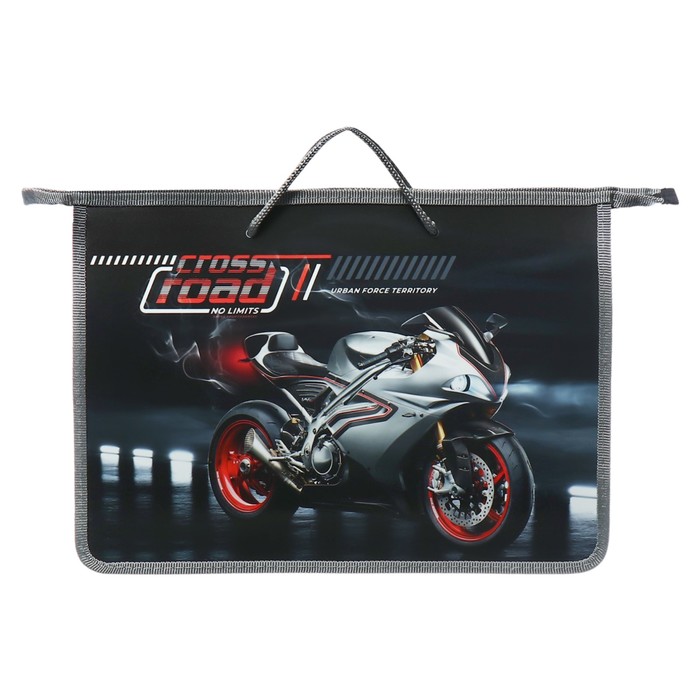 Папка с ручками А4, 340 х 245 х 45 мм, пластиковая, ручки-шнурок, Оникс ПТ-15 "Спортбайк"
