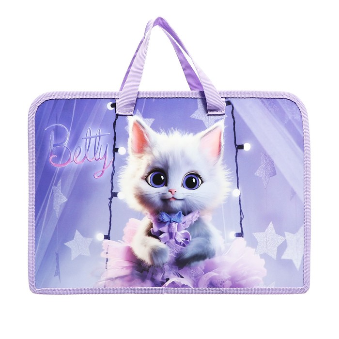 Папка для чертежей и рисунков А3, 470 х 350 х 75 мм, с ручками, текстильная, ПМД 3-20-4 "Магия кота" (тесьма) 71725