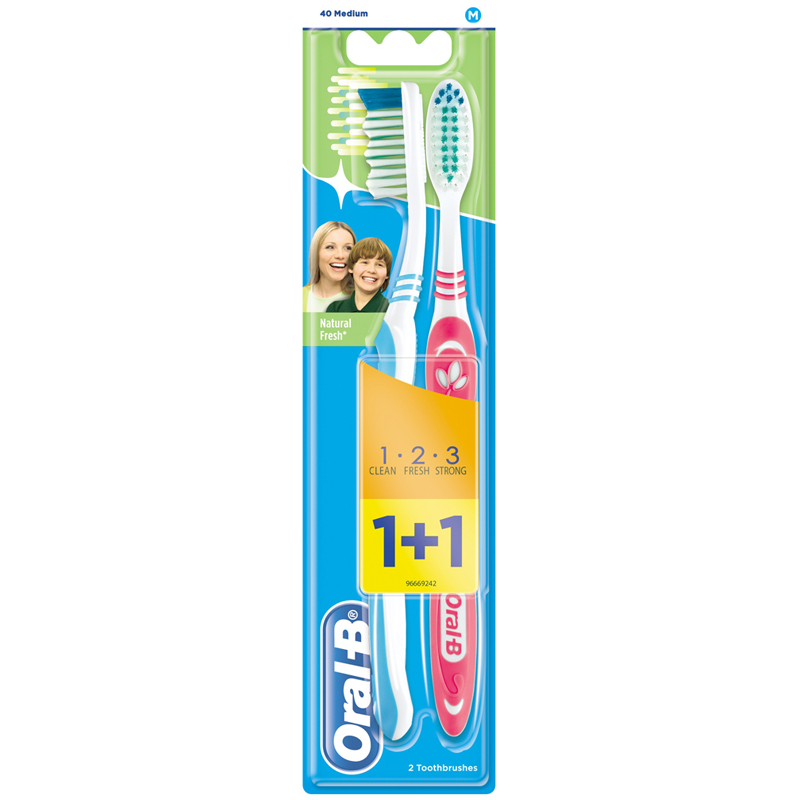 Зубная щетка Oral-B "3-Effect Натуральная Свежесть", средняя жесткость, 1шт+1шт бесплатно (ПОД ЗАКАЗ)