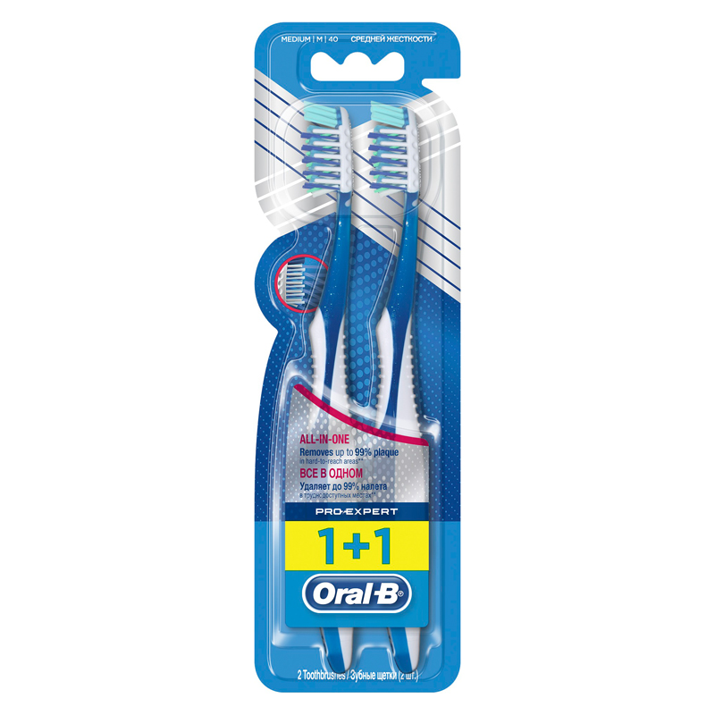 Зубная щетка Oral-B "Pro-Expert. Все в одном 40 ", средняя 1шт + 1шт бесплатно