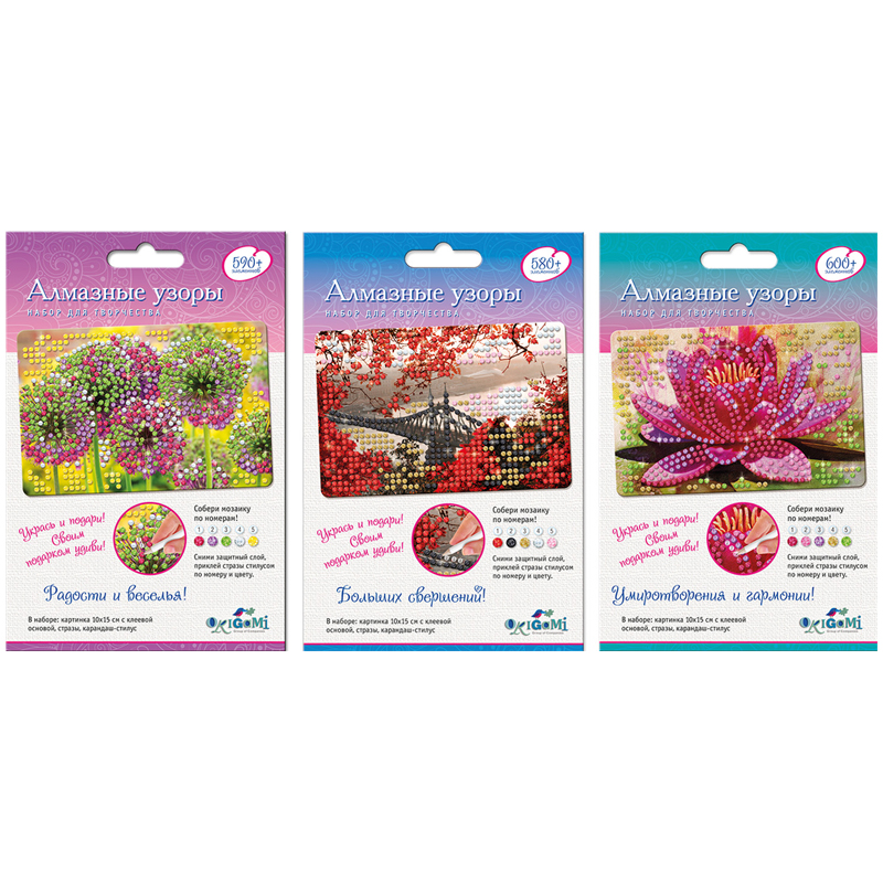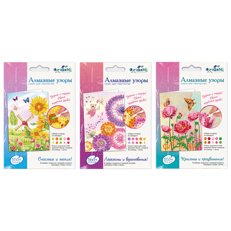 Алмазная мозаика Origami "Алмазные узоры. Укрась и подари. Картинка", 10*15см, ассорти, европодвес
