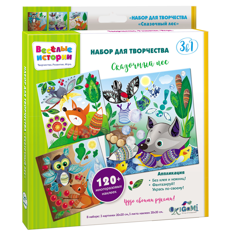 Набор для творчества 3в1 Origami "Сказочный лес", 3 картинки, 120 многоразовых наклеек