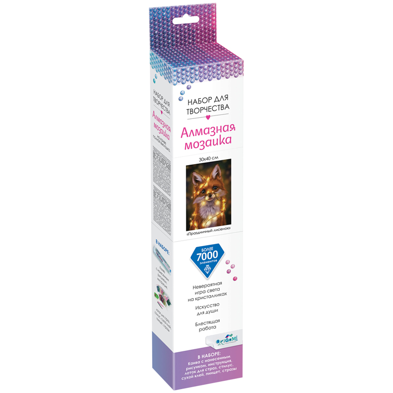 Алмазная мозаика Origami "Алмазные узоры. Пушистые зверьки.Праздничный лисенок", 30*40см, европодвес