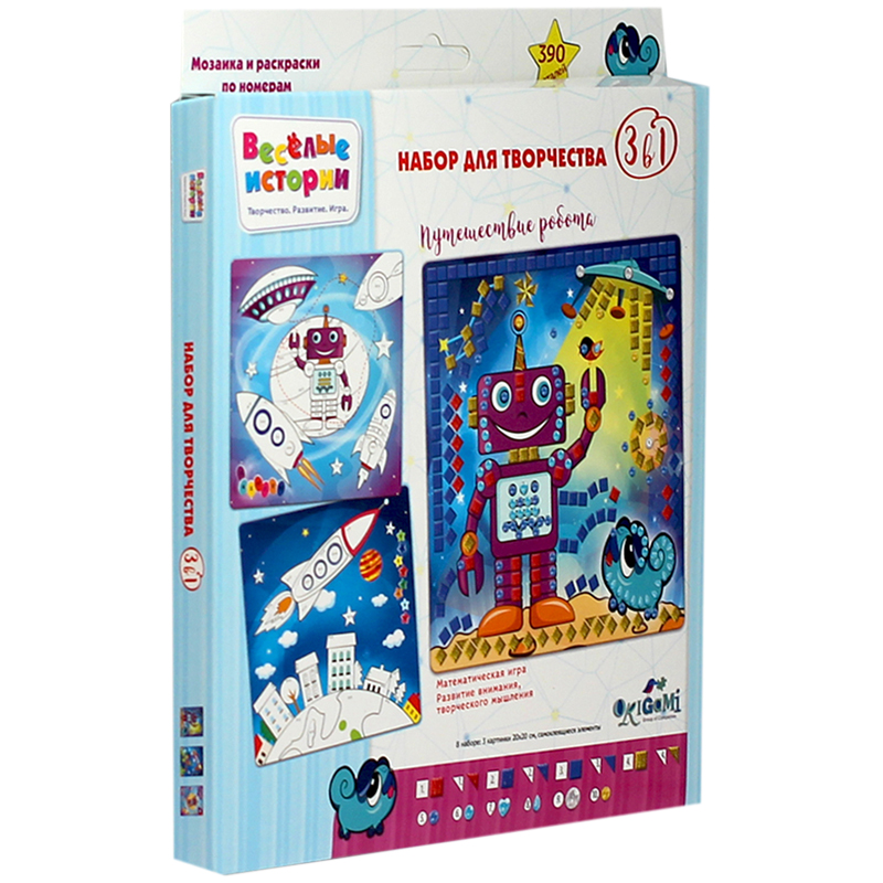 Набор для творчества 3в1 Origami "Путешествие робота", мозаика и раскраски по номерам