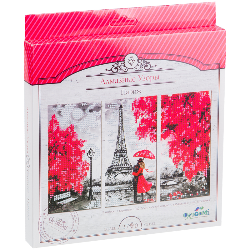 Алмазная мозаика Origami "Алмазные узоры. Триптих. Париж", 3 картинки*10*20см, европодвес