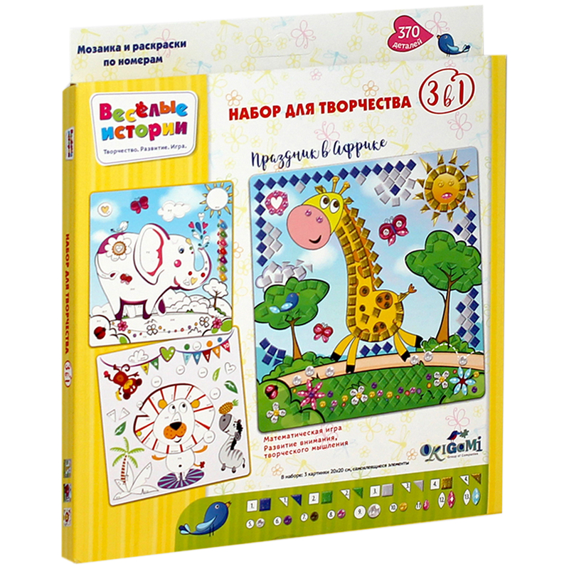 Набор для творчества 3в1 Origami "Праздник в Африке", мозаика и раскраски по номерам