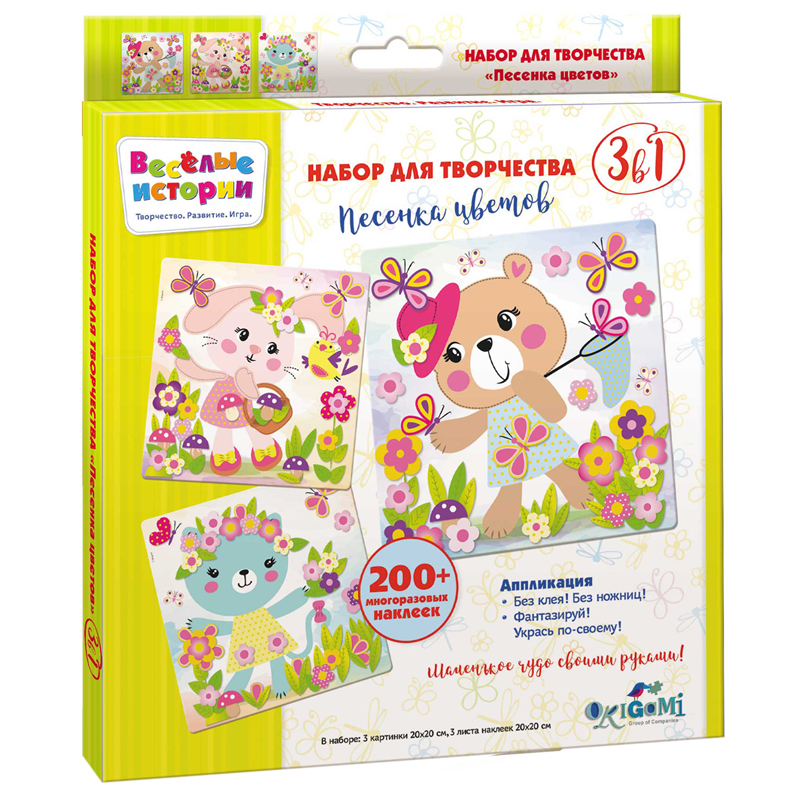 Набор для творчества 3в1 Origami "Песенка цветов", 3 картинки, 200 многоразовых наклеек