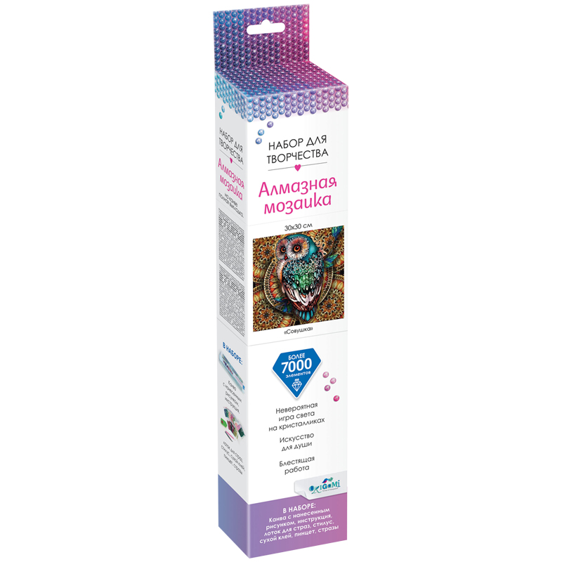 Алмазная мозаика Origami "Алмазные узоры. Орнаменты. Совушка", 30*30см, европодвес
