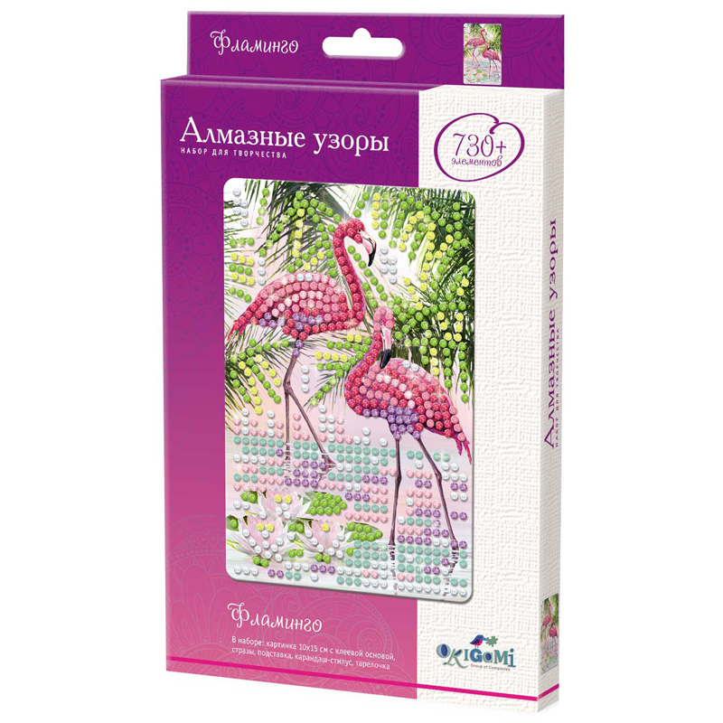 Алмазная мозаика Origami "Алмазные узоры. Фламинго", 10*15см, европодвес