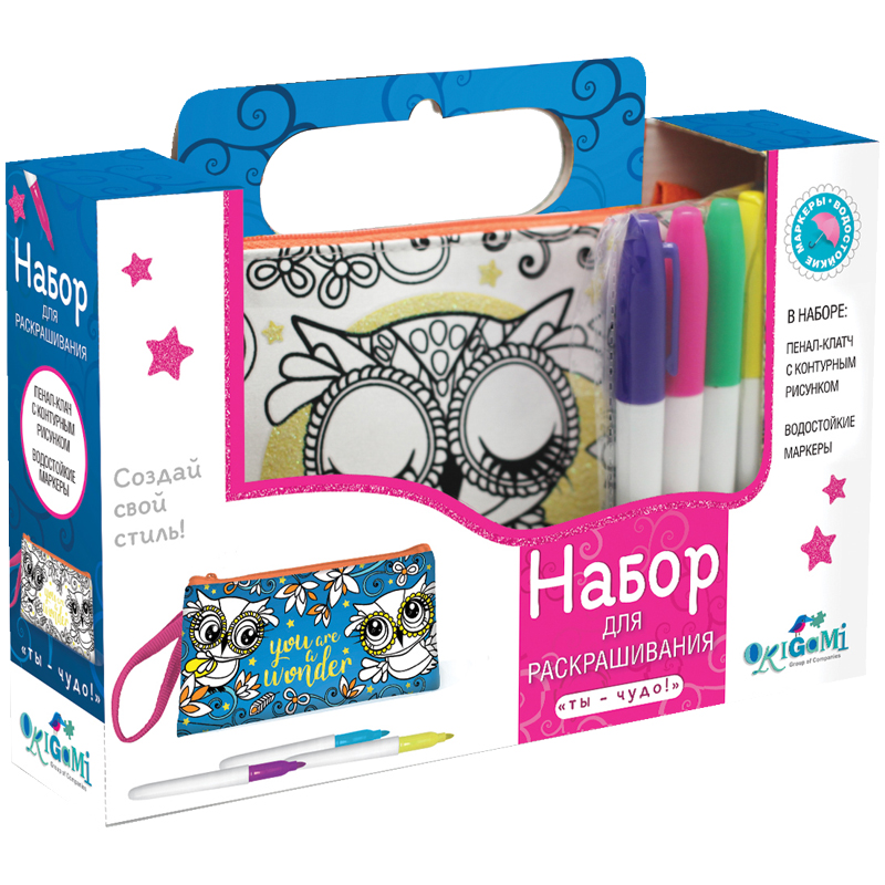Набор для раскрашивания пенала Origami "Ты - чудо!", 22*12*7см, водостойкие маркеры 6цв.