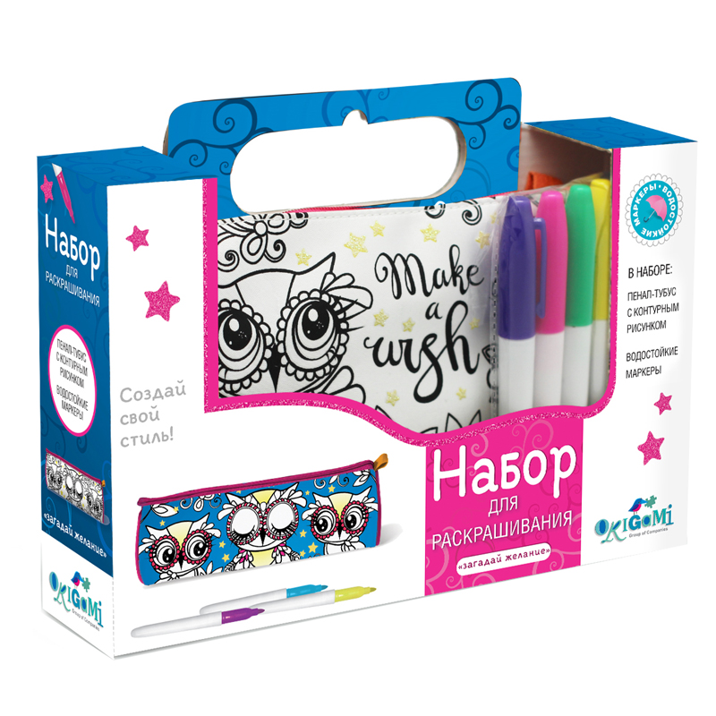 Набор для раскрашивания пенала Origami "Загадай желание", водостойкие маркеры 6цв.