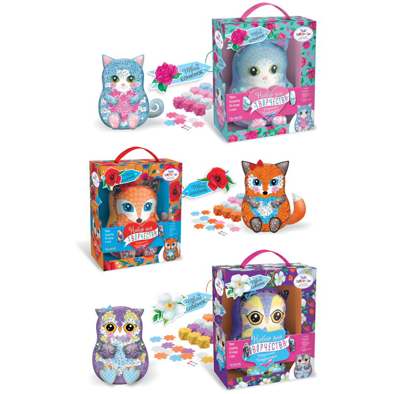 Набор для творчества Origami - Узоры из плюша "Подушечка - игрушечка. Кошечка/Лисичка/Совенок", ассорти