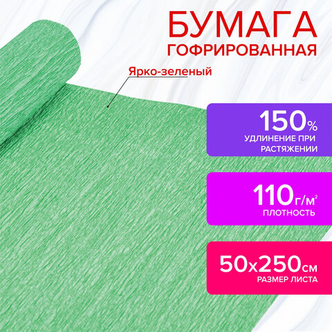 Бумага гофрированная/креповая, 110 г/м2, 50х250 см, ярко-зеленая, в рулоне, ОСТРОВ СОКРОВИЩ, 112537
