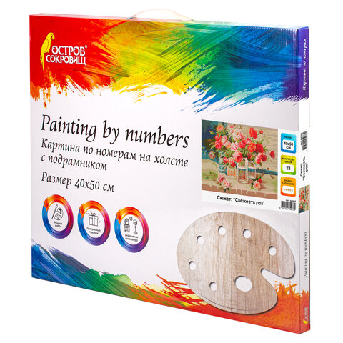 Картина по номерам 40х50 см, ОСТРОВ СОКРОВИЩ "Свежесть роз", на подрамнике, акриловые краски, 3 кисти, 662465
