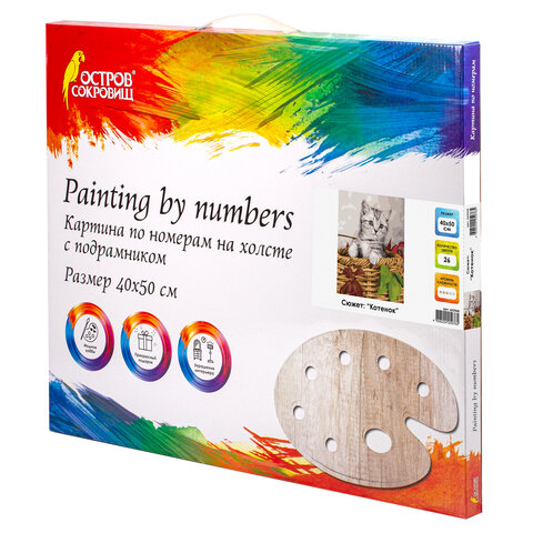 Картина по номерам 40х50 см, ОСТРОВ СОКРОВИЩ "Котёнок", на подрамнике, акриловые краски, 3 кисти, 662468