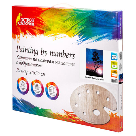 Картина по номерам 40х50 см, ОСТРОВ СОКРОВИЩ "Звездная ночь", на подрамнике, акриловые краски, 3 кисти, 662495