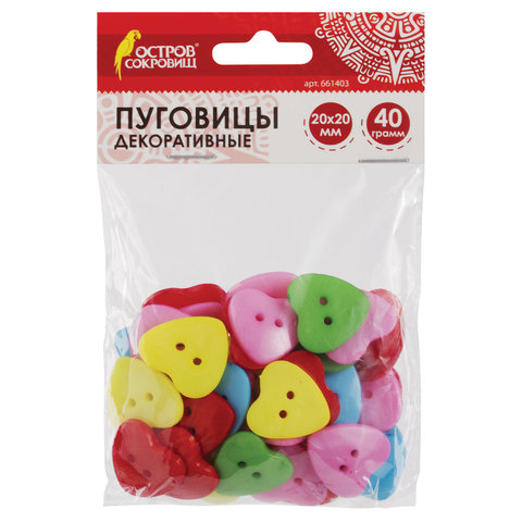 Пуговицы декоративные "Сердце", пластик, 20х20 мм, 40 г, 5 цветов, ОСТРОВ СОКРОВИЩ, 661403