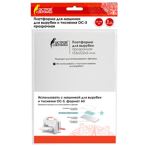 Платформа для машинки для вырубки и тиснения ОС-5 прозрачная, 153х222х3 мм, ОСТРОВ СОКРОВИЩ, 663793, 860-109-015