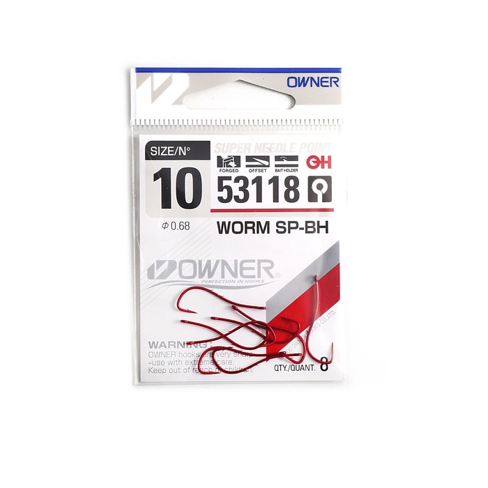 Крючок OWNER Worm SP-BH bloody red №10, 8 шт.