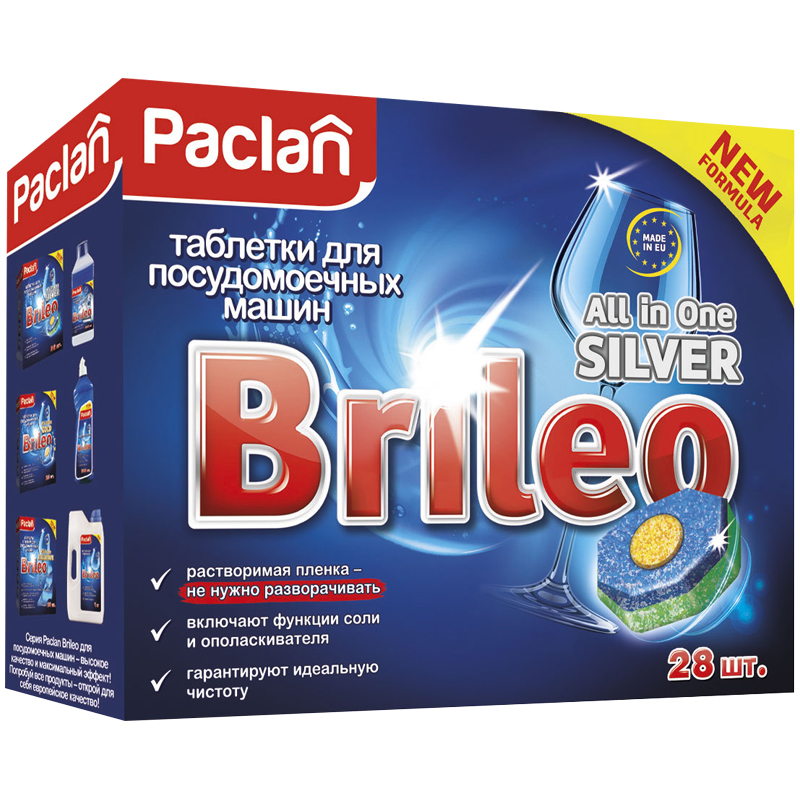 Таблетки для посудомоечной машины Paclan "Brileo. All in one Silver", 28шт.