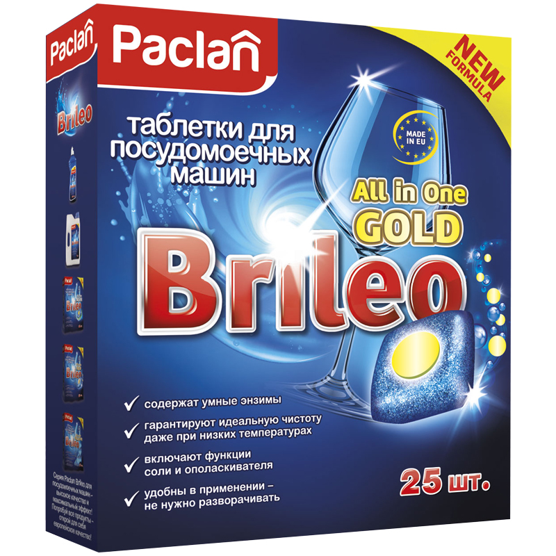 Таблетки для посудомоечной машины Paclan "Brileo. All in one Gold", 25шт.