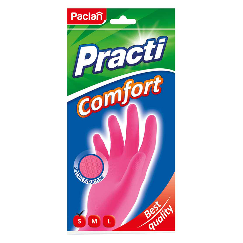 Перчатки резиновые Paclan "Practi. Comfort", S, розовые, пакет с европодвесом