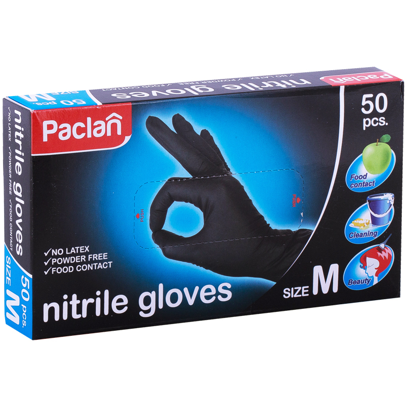 Перчатки нитриловые Paclan "Practi", M, черные, 50шт., картон. коробка