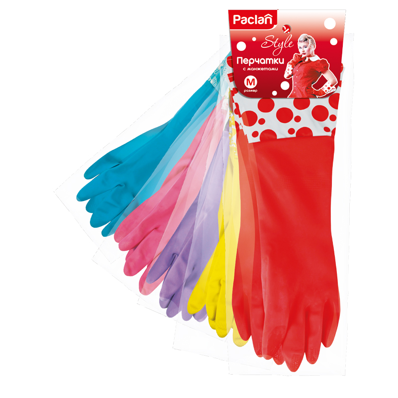 Перчатки резиновые с манжетами Paclan "Practi", M, 1 пара, ассорти, пакет, европодвес