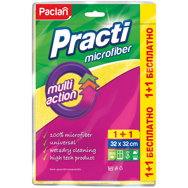 Салфетки для уборки Paclan "Practi", набор 2шт., микрофибра, 32*32см, европодвес