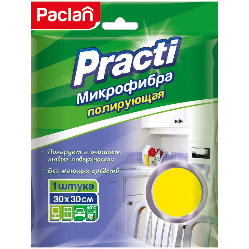Салфетка для уборки Paclan "Practi" микрофибра, 30*30см, европодвес
