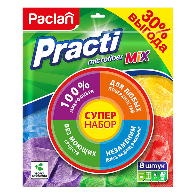 Салфетки для уборки Paclan "Practi. Microfiber Mix", набор 8шт.