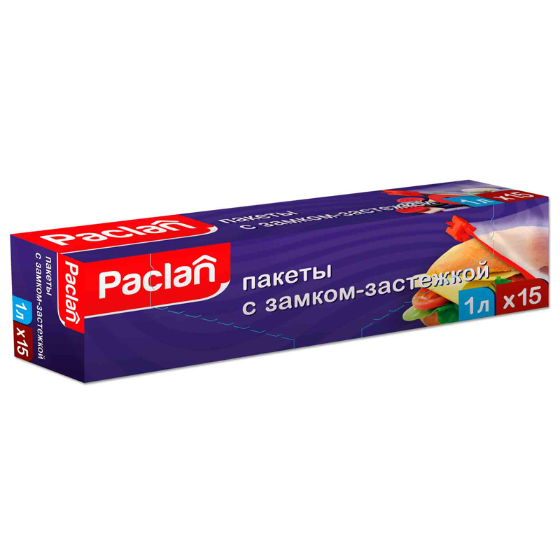Пакеты с замком "Zip Lock" (15шт.) Paclan, 1л, для хранения и замораживания, 22*18см