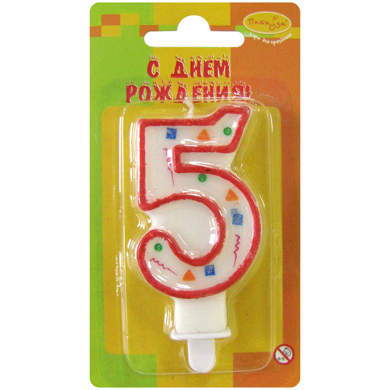 Свеча для торта с держателем ПатиБум "Цифра 5. Красное конфетти", 7см