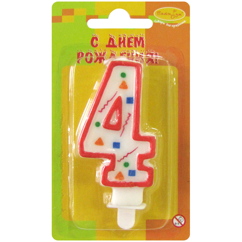 Свеча для торта с держателем ПатиБум "Цифра 4. Красное конфетти", 7см