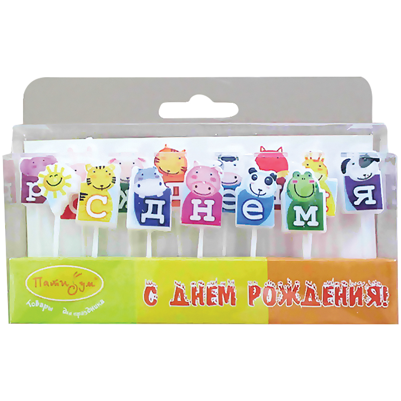 Свечи для торта с держателями ПатиБум Буквы "С днем Рождения". Забавные зверята", 2,5см
