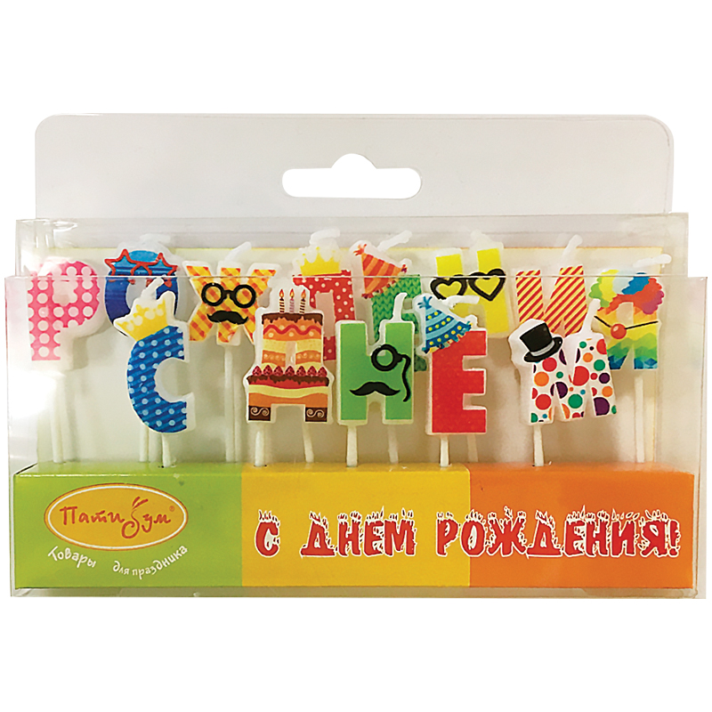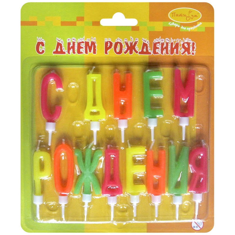 Свечи для торта с держателями ПатиБум Буквы "С Днем Рождения", 4см, 13шт.