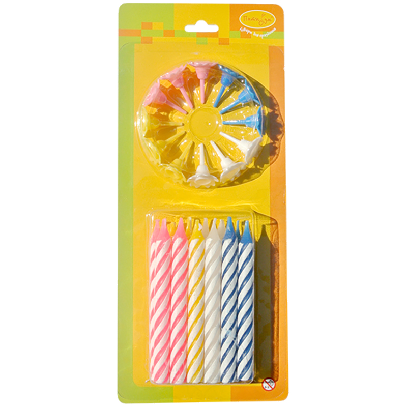 Свечи для торта с держателями ПатиБум, 2-х цветные, 6см, 12шт.