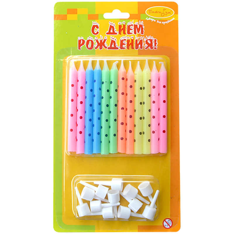 Свечи для торта с держателями ПатиБум "В горошек" ассорти, 12шт.