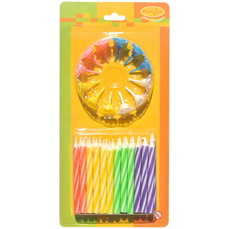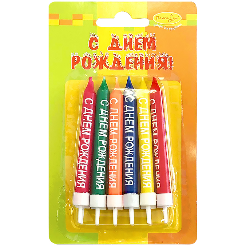 Свечи для торта с держателями ПатиБум "С Днем Рождения", 8см, 12шт.