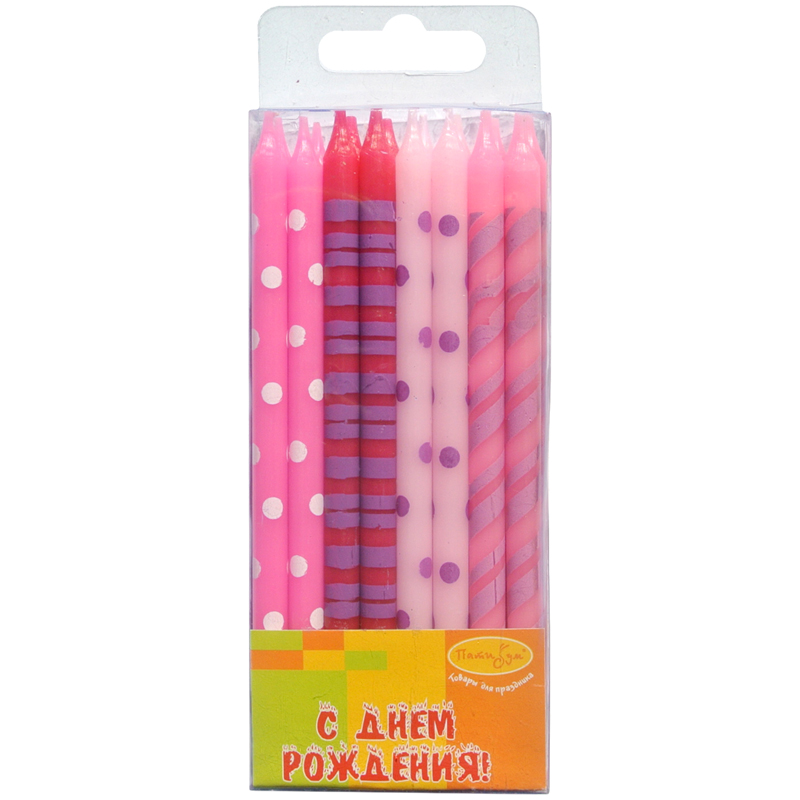 Свечи для торта ассорти розовое, ПатиБум, 12см, 16шт.