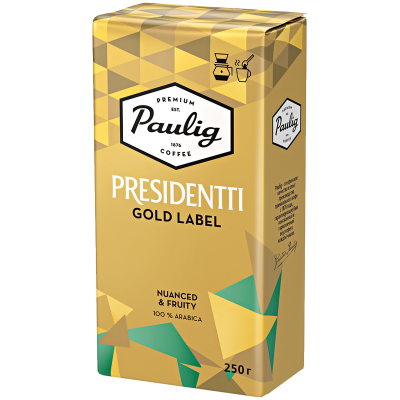 Кофе молотый Paulig "Presidentti Gold Label" вакуумный пакет, 250г
