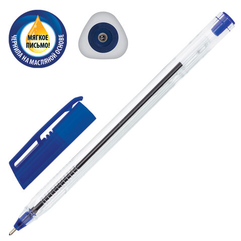 Ручка шариковая масляная PENSAN "Global-21", СИНЯЯ, корпус прозрачный, узел 0,5 мм, линия письма 0,3 мм, 2221