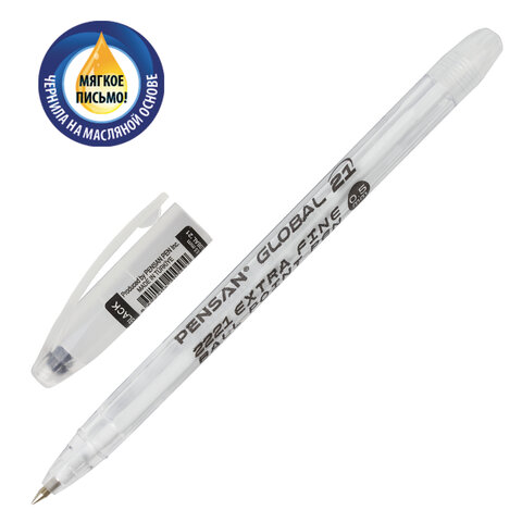 Ручка шариковая масляная PENSAN "Global-21", ЧЕРНАЯ, корпус прозрачный, узел 0,5 мм, линия письма 0,3 мм, 2221