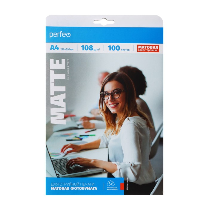 Фотобумага для струйной печати А4, 100 листов Perfeo, 108 г/м2, односторонняя, матовая