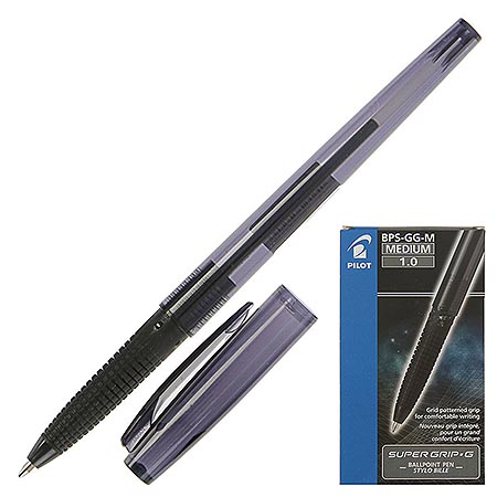 Ручка шариковая " Pilot " Medium черная 1,0мм резиновый держатель, чернила на масляной основе, прозрачный корпус, картонная упаковка