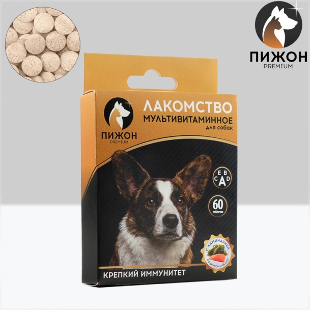 Лакомство для собак "Пижон. Крепкий иммунитет" с ламинарией, со вкусом лосося, 60 таб